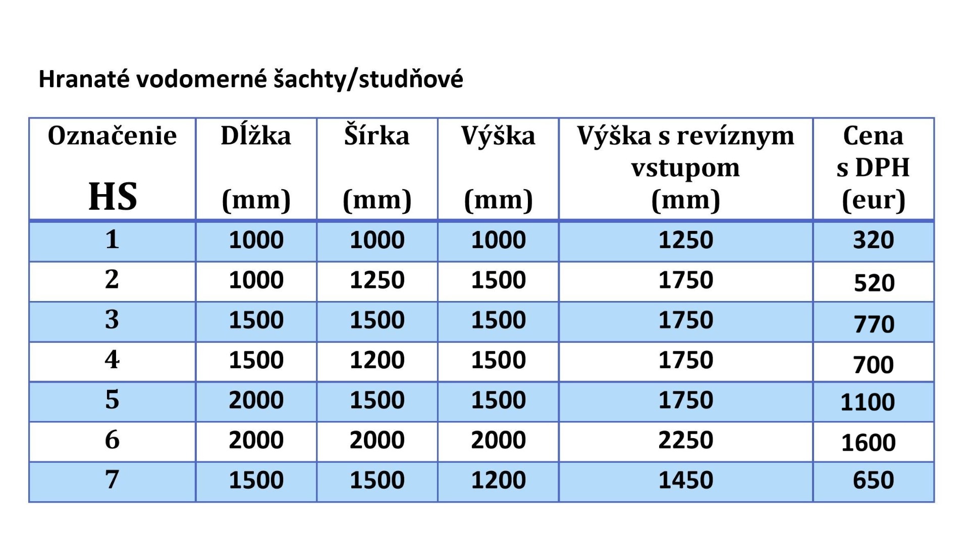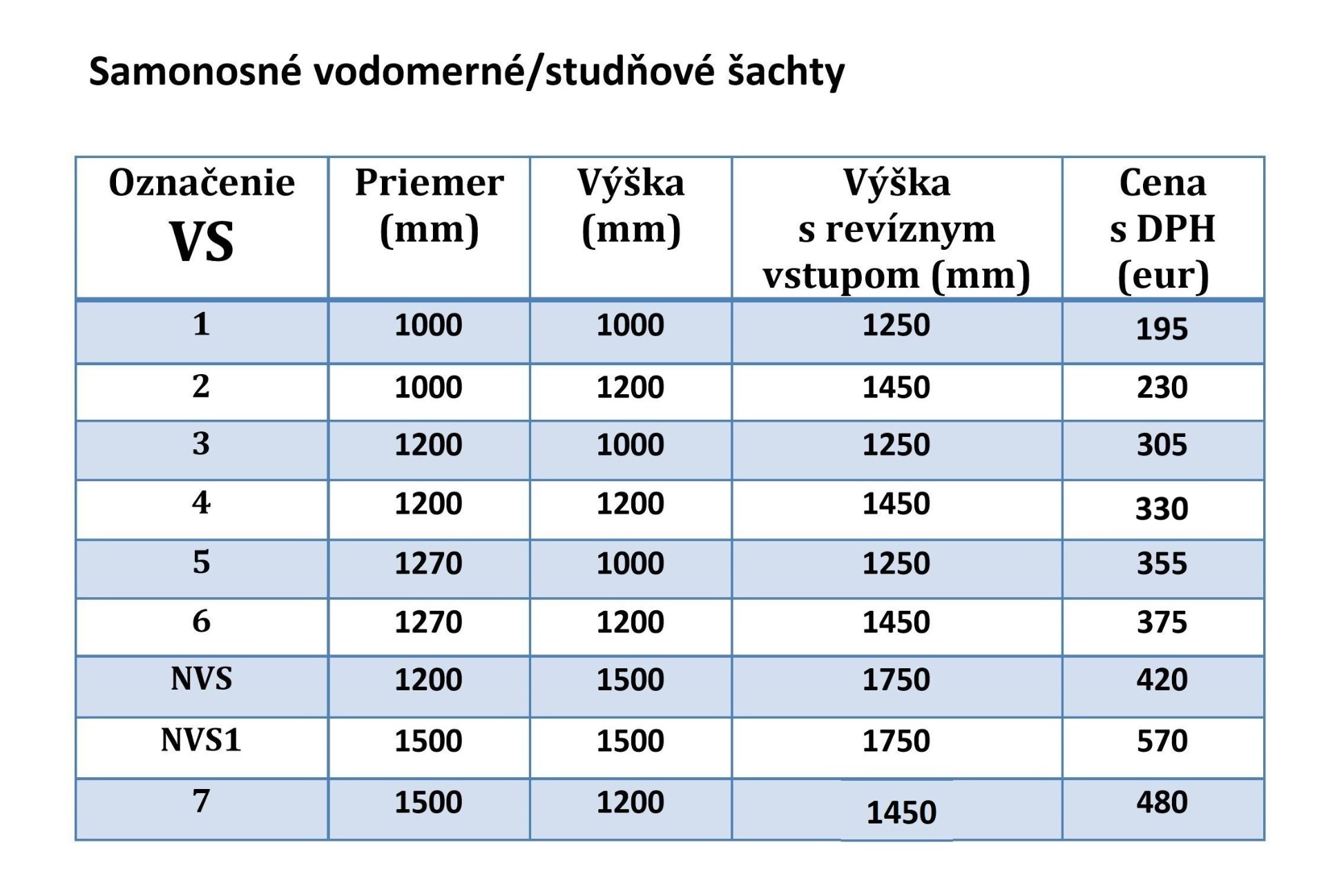 Podľa TVK (Trenčianskej vodárenskej a kanalizačnej spoločnosti ) sú stanovené rozmery plastovej šachty kruhového profilu minimálneho priemeru 1200 mm s výškou 1800 mm.(NVS)